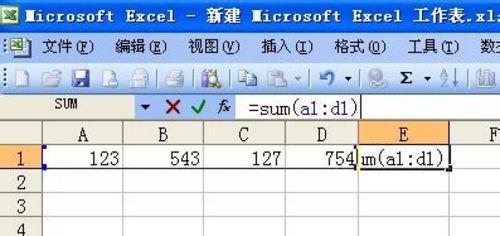 1.先选中要输出计算结果的表格。在标题栏输入公式,格式为"=sum(d1:d4)"