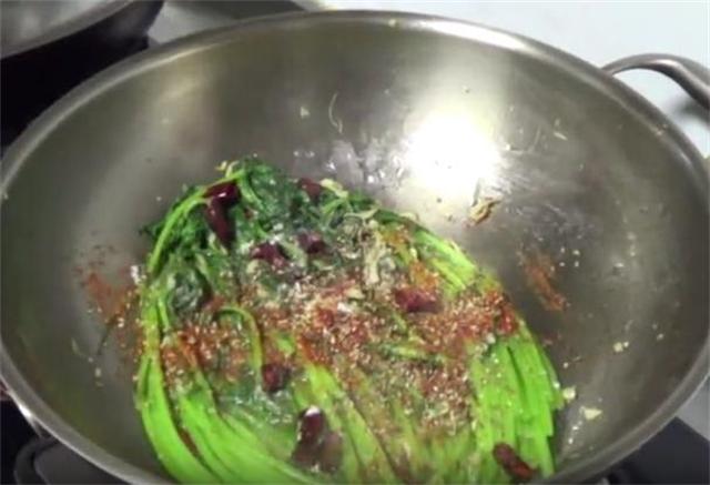 准备食材: 茼蒿、干辣椒、蒜末、白芝麻、孜然、辣椒粉、食用油、盐、味精 具体做法: