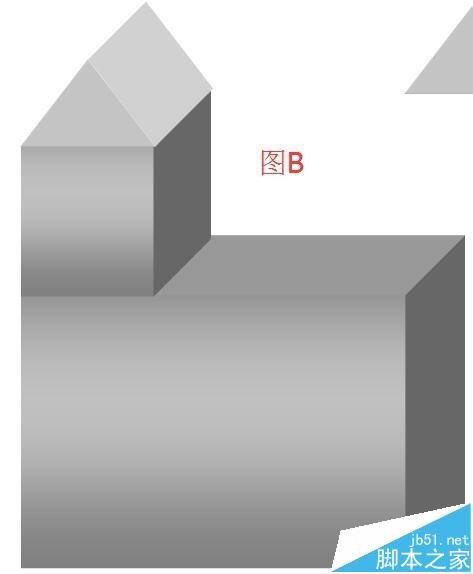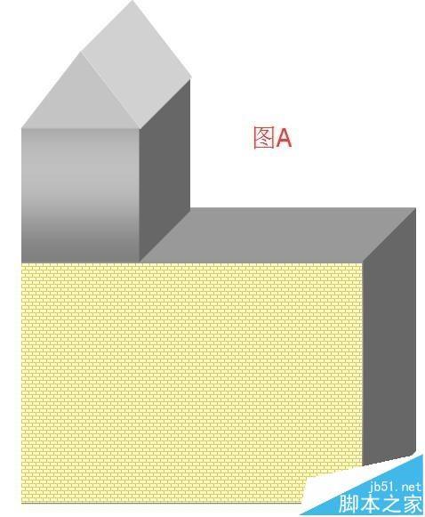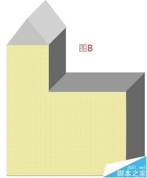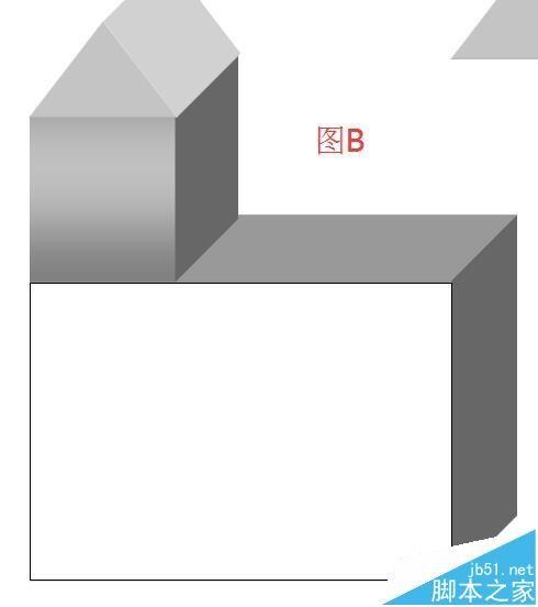 7、房子的框架画好了。现在来装修下房子的外墙。在文档绘图工具栏中点选“矩形”图标,在文档上画下,画出图形;然后,把图形放在大的立方体上,如图B所示。