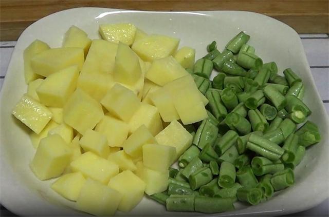 1.朋友们,大家好,今天我们来做一个懒人豆角焖饭,制作简单,香喷好吃。准备一个土豆,几根四季豆,适量的米饭,然后把四季豆切小段,土豆切小块。(www.ws46.Com)