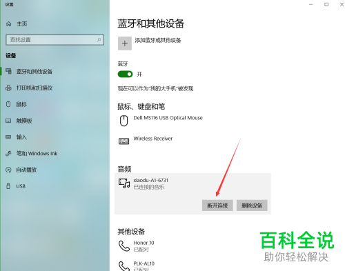 6. 第六步,当我们成功配对后,请选择其中的连接小度智能音箱这一项,这时候,小度会说:“蓝牙已连接”,这就表示我们已经成功连接蓝牙。