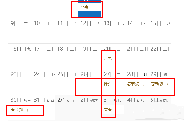 6、此时我们就可以看到在日期的下面多出了一些信息,有节假日、有二十四节气,是不是很方便,赶快动手设置一下吧!