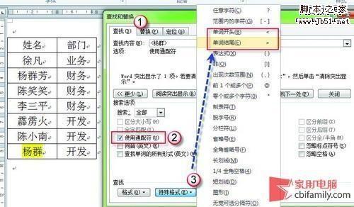 但是对于中文来说,就有点爱莫能助了。比如在一份有关职员的Word表格中,因为单位人员多,人的姓名往往有一定的重合性和包含关系,比如一个员工“杨群”,另外一个员工“杨群芳”,此时我们想直接查找到员工“杨群”时,可以利用通配符的方法来实现功能。 |