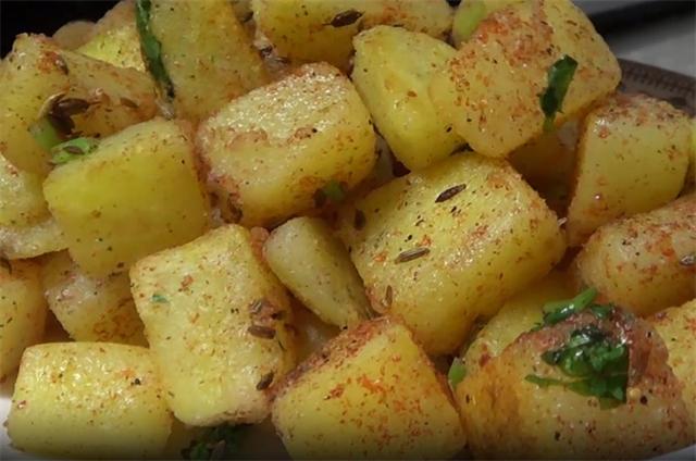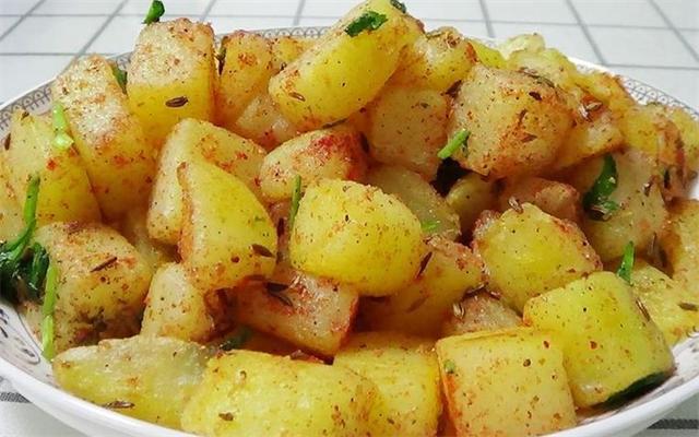 4.我们今天这道孜然香辣土豆就做好了,闻着是非常的香,有一种烤土豆的味道,做这个土豆一定要切的小一点块,土豆一定要先煮熟,因为土豆煮熟之后非常易碎,所以说这里推荐用平底锅,然后把它煎的稍微焦一些,也不用加太多的调料,就加辣椒粉和孜然粒就可以了,可以撒一些香菜或者是葱花都可以,非常的棒。 |