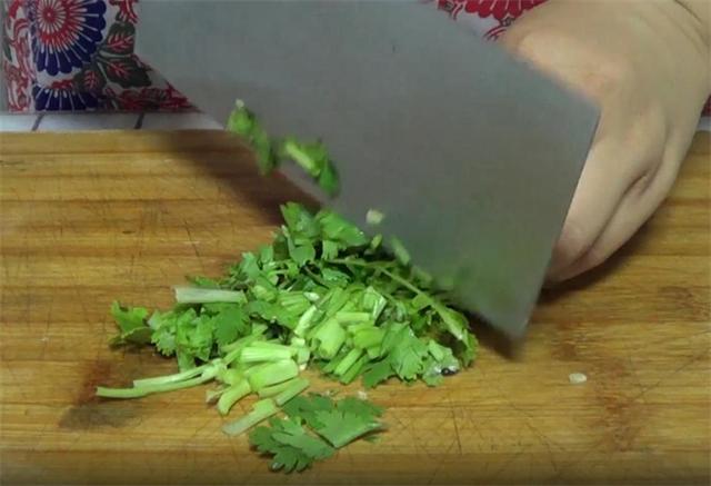 3.香菜切成碎末,再把蒜切成蒜末,小米辣切成小圈。