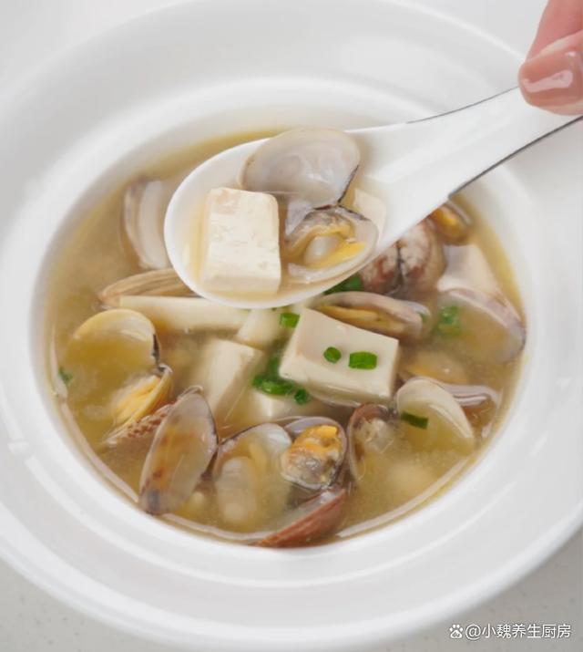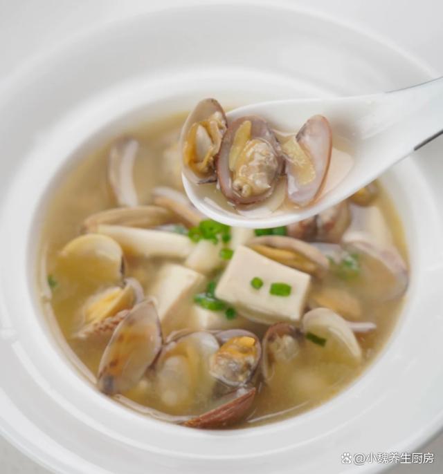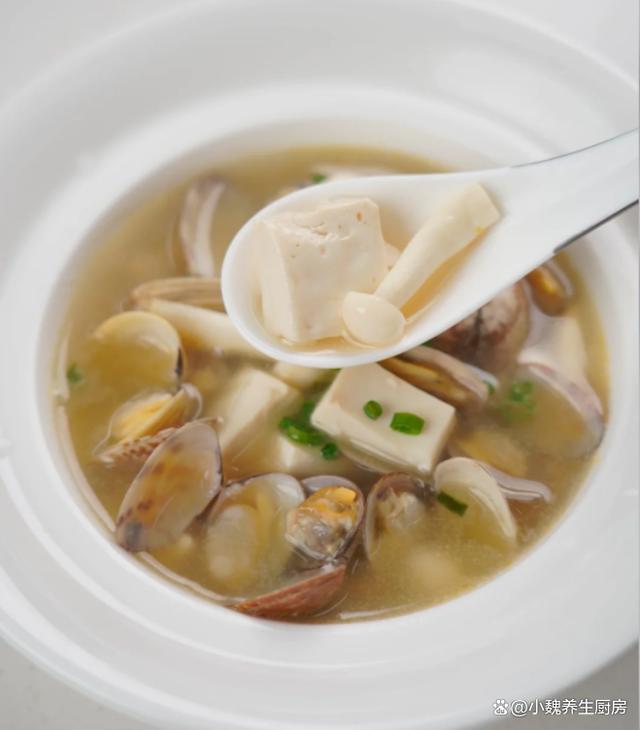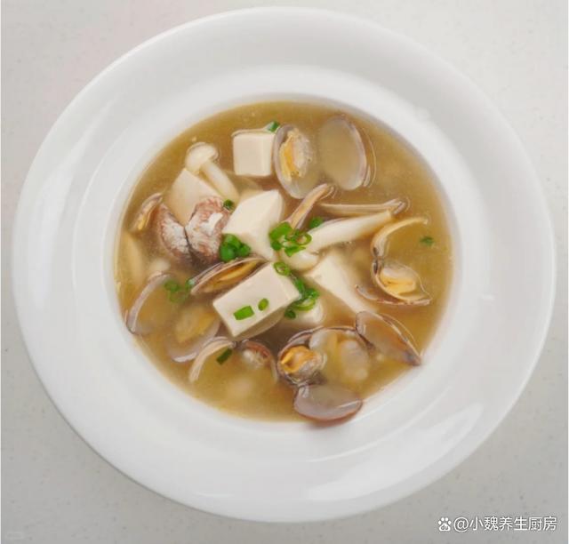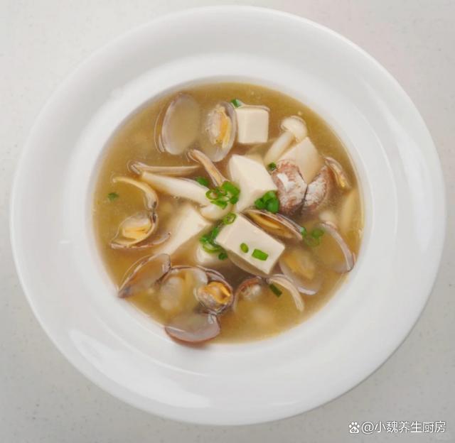 已经迈入到十月,深秋到了,已经感受到秋季的凉意,气温一天比一天低,温差也越来越大,感受秋天的气息,这个时候特别容易生病,需要提升自己的抵抗力,平常多喝一些汤品,比如说肉汤,鱼汤等等。今天准备分享一款老少皆宜的汤品——花蛤菌菇豆腐汤,简单煮一锅,汤品特别鲜美,赶快收藏起来。秋季,豆腐和它是绝配,鲜嫩美味,汤品鲜美,不懂吃可惜了!  【花蛤菌菇豆腐汤的烹饪顺序】 食材清单:挑选新鲜白玉菇120克左右(白玉菇是菌菇的品种之一,色泽洁白,菌盖特别光滑,鲜嫩美味,荤素都可以搭配,秋冬季节适合来煮汤,让汤品鲜美倍增),食用油少许,新鲜花蛤250克左右(花蛤又名蛤蜊,是一种很受欢迎的海鲜,价格也不贵,一般可以红烧或煲汤,汤品非常鲜美),少许清水,一小块嫩豆腐,生姜几片,食盐少许,味极鲜少许,胡椒粉少许,香葱若干根,其他。 详细制作过程: 第一步:提前选购好花蛤,白玉菇和豆腐等食材,先把白玉菇去掉根部,反复清洗干净,也可以焯水处理,去掉菌菇的异味。第二步:将生姜切成薄片,豆腐用清水漂一漂,豆腐切成若干小块,豆腐可以用热水焯烫,去掉豆腐的豆腥味,捞出即可。 第三步:花蛤都放在容器中,加上适量清水,滴入食用油,加上少许食盐,用手搅拌均匀,经过盐水浸泡,花蛤会吐出一些泥沙,也可以焯水处理,这样吃起来更加放心。 (www.ws46.cOm) 第四步:锅底加上食用油或猪油,加上葱花和姜片,倒入菌菇炒至变软,加上适量清水或开水。 第五步:放入一些花蛤煮几分钟,将花蛤煮至开花,放入一些豆腐块,炖煮一小会儿,汤汁煮至变色。 第六步:加上少许鸡精,食盐和胡椒粉,继续炖煮2-3分钟,撒上葱花点缀,焖煮一会儿,关火盛出,这道花蛤菌菇豆腐汤就制作完成了。 花蛤菌菇豆腐汤的小贴士:首先,挑选新鲜的花蛤至关重要。新鲜的花蛤壳应紧闭或轻触后迅速闭合,色泽鲜亮,无异味。购买后,可将花蛤置于淡盐水中浸泡数小时,让它们自然吐沙,期间可多次换水,以确保汤品清爽无沙。其次,菌菇的选择同样多样且富有讲究。不同种类的菌菇能为汤底增添各异的香气与口感,如金针菇的脆嫩、香菇的浓郁或是平菇的鲜美,都是不错的选择。记得在烹饪前将菌菇清洗干净,并适当切除根部硬结部分,以免影响口感。 再者,豆腐的选择与处理也不容忽视。嫩豆腐细腻柔滑,老豆腐则更有嚼劲,根据个人喜好选择即可。切块时不宜过大,以便更好地融入汤中,吸收汤汁的精华。此外,豆腐入锅时间需掌握好,过早易碎,过晚则不易入味。 最后,调味时建议以简单为主,少量盐与胡椒粉提味即可,因为花蛤和菌菇本身已足够鲜美,过多的调料反而会掩盖其本味。若喜欢更浓郁的口感,可在出锅前撒上少许葱花或香菜,增添一抹清新的绿意与香气,让这道花蛤菌菇豆腐汤成为餐桌上的一道温馨亮点。 你们是否喝过这款花蛤菌菇豆腐汤呢?(上述配图都出自网络)