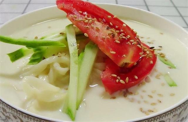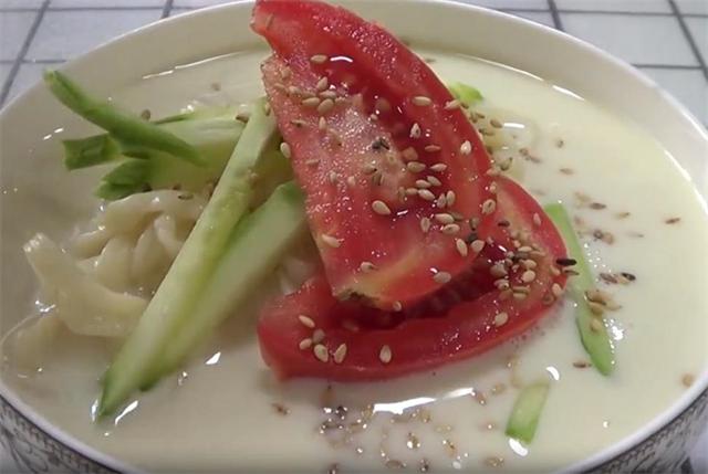 5.我们今天这个豆浆凉面就做好了,这个豆浆我是没有加糖的,今天打算尝一下咸口,我也是第一次做这个豆浆凉面,在网上都说非常的好吃,今天也尝试一下,看着是非常有食欲的,非常的香,这个豆浆凉面好吃是非常好吃,但是就是太腻了,然后豆浆今天放了盐也是很好喝的,这个做法还是很新颖,如果有想这样做的朋友,可以尝试一下,豆浆还是尽量自己在家做,只不过不要做这么浓,我这个做的有点太浓了。 |