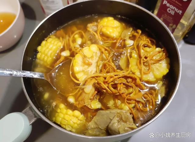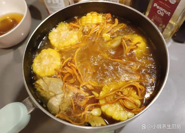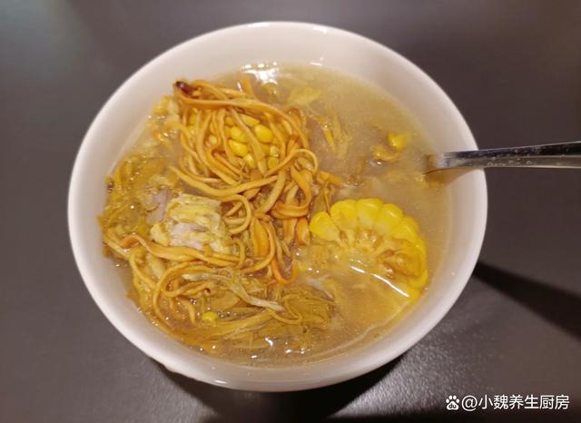转眼就到了十月份,还过几天就要上班了,最近热搜都是人,幸好自己没有出门,在家其实也是一种享受,出门看了电影,回家给孩子和老公准备丰盛的菜肴,总共是四菜一汤,今天分享其中一道汤品——玉米虫草花炖鸭汤,老少皆宜,营养全面,别不懂吃。金秋十月,有钱没钱,建议多喝这汤,补足营养,增强免疫身体棒。  【玉米虫草花炖鸭汤的正确做法】 食材清单:挑选30克优质虫草花(虫草花是一种色泽金黄的中药材,食药两用,对气血有帮助,平常煲汤可以放一丢丢),一根新鲜糯玉米(玉米分为品种,要选择色泽金黄,颗粒非常分明的玉米,别选择空瘪和太老的玉米,玉米口感非常清甜,搭配各种肉类都能煲汤),选购半只鲜活的青头鸭(个人建议选择活鸭,最好是土鸭,用来煲汤是一绝),老姜半块,香葱少许,食盐若干,其他。 正确做法: 1:提前准备好玉米,虫草花,老鸭和其他食材,将虫草花去掉根部,用温水浸泡一会儿,或者掐成两半,备用。 2:把玉米的叶片撕下来,玉米须去掉,用清水冲洗干净,去掉多余的部位,剁成若干小块,放在一边备用。 3:老鸭提前宰杀好,破开肚子,取出里面的内脏,去掉鸭子的绒毛,去掉屁股和鸭头,剁成大小相同的块状。 4:鸭肉放在容器中,加上适量清水浸泡,中途多换几遍水,老姜切成片状,大葱切成若干小段即可。5:鸭肉倒入汤锅之中,倒入鸭肉,姜片和葱段,加上足量的冷水,加上黄酒或料酒,把鸭肉的腥味去掉,撇去一层油腻物质。 6:汤锅提前洗干净,分别放入鸭肉,玉米,虫草花和姜片,加上纯净水少许,把鸭汤炖一个半小时。 (www.ws46.com) 7:让汤汁变黄,调入少许胡椒粉和食盐,让汤品煮至入味,出锅开吃,这款玉米虫草花炖鸭汤就可以食用了。 玉米虫草花炖鸭汤的制作小贴士:首先,选择新鲜的虫草花至关重要,优质的虫草花色泽金黄,质地柔韧,带有自然的清香,能够大大提升汤品的鲜美度。如果条件允许,可以优先选用散养的土鸭,其肉质紧实,味道鲜美,炖煮后汤汁更为醇厚。 其次,在炖煮过程中,火候的掌握是关键。建议先用大火将汤烧开,以去除食材的腥味和血水,随后转小火慢炖。小火慢炖不仅能充分释放食材中的营养成分,还能使鸭肉更加酥软入味,虫草花和玉米的香甜也能更好地融入汤中,形成层次分明而又和谐共融的口感。 此外,为了增添汤品的色泽与风味,可以在最后阶段加入少量的枸杞和红枣。枸杞富含多种维生素,具有滋补肝肾、益精明目的功效;红枣则能补血养颜,提升整道菜的滋补效果。它们不仅能为汤品增色添彩,还能让每一口都充满温暖与关怀。最后,品尝之前,不妨根据个人口味适量加盐调味。记住,好汤往往不需要过多的调味品来修饰,保持食材的原汁原味才是最佳。一碗热气腾腾、香气四溢的玉米虫草花炖鸭汤,不仅暖身更暖心,是家庭聚餐或朋友聚会时不可多得的美味佳肴。 玉米虫草花炖鸭汤是一款巨鲜美的汤品,里面包括玉米,虫草花和老鸭,简单炖一锅,汤品浓稠,鲜美倍增,喝起来特别舒服,帮助促进营养的消化,增强免疫少生病。网友们,你们是否掌握这道玉米虫草花炖鸭汤的正确做法吗?(本文的配图全部出自网络)