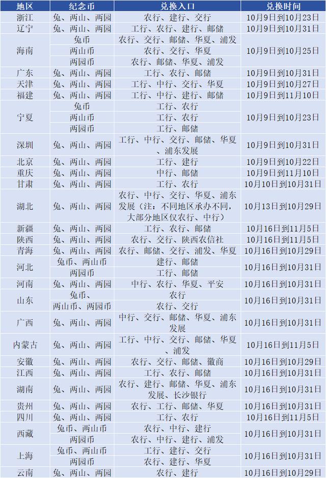 注意,具体网点的兑换信息,可以去当地分行的公告中查看,部分网点可能没有份额,看准再去,省得跑空。 还有少量地区要预约后才能兑换。 百科网也给大家整理好了,都是10月16号晚上进行预约!