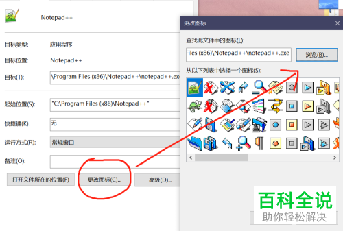 5. 第五步,如图所示,请右击应用,然后就会到达“更改图标”新界面,我们需要选择刚才的ico类型图标。
