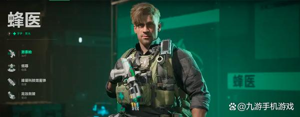 第四个推荐的就是医疗兵了,这也是战神上必不可少的存在,大家经常玩的这个角色叫蜂医,他的主要技能就是帮助队友复活或者提高队伍的血量,续航能力非常强,还能提高整个队伍的生存能力。他的核心能力是激素枪,这个技能是比较好用的,哪怕大家不在小伙伴们身边,也可以远程的替小伙伴们回复生命力,同时还能让队友的武器状态也修复。他的医疗包道具也能够提高队友的生命,只不过一次只能带一个。剩下的复活针则是可以直接给自己的队友多加一条生命。