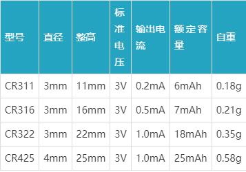 二、种类划分 电子漂电池主要有CR311、CR316、CR322、CR425等,其中尤以CR316和CR425最常用,CR后面的数字代表的是电子漂电池的规格,例如CR316表示电子漂电池的底部直径3毫米、长度(高度)16毫米,CR425则表示电子漂的底部直径4毫米、长度(高度)25毫米。