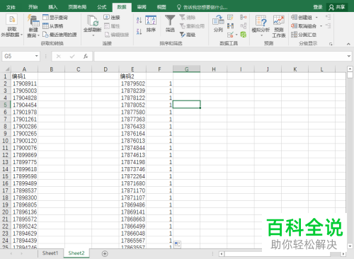 不同列数据中的重复比对1. 以下图表格为例,想要知道在“编码2”列中有多少数据在“编码1”列,先在右侧添加一列辅助列,如图,在“编码2”后面加了列1。