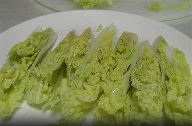 1.今天我们来做一个非常好吃的火腿蒜蓉娃娃菜,准备两个娃娃菜,一根素火腿肠,准备好之后,我们把娃娃菜改一下刀,切好洗净,摆入盘中。