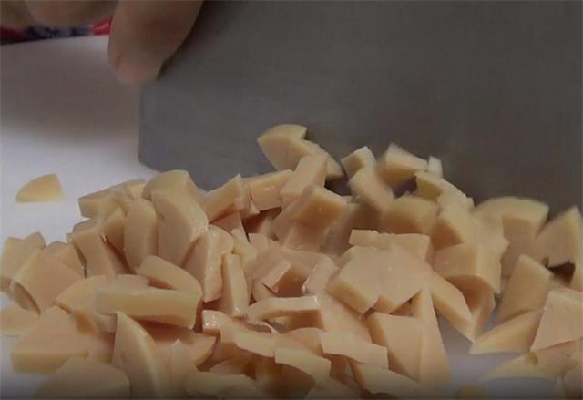 3.蒸娃娃菜的时候,我们把素火腿肠和蒜切一下。(www.Ws46.com)