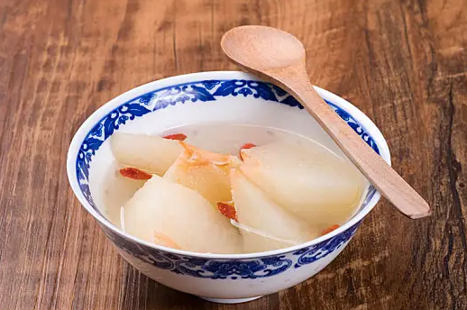 炖梨子的功效与作用1.清热化痰 炖梨在中药中既甜又凉。它进入肺和胃经,含有大量水分和各种成分,可以加速身体的新陈代谢。它可以排出体内的热量,从而达到一定的清热降火的效果。同时,它能养肺,对某些热证引起的咳嗽、痰热等疾病有很好的缓解作用。 2.润肠通便 炖梨富含水分、一定的糖分、有机酸、膳食纤维等成分。食用后可以起到润滑肠道的作用,增加消化液的分泌,增强胃肠蠕动的速度,从而减少排泄物在体内的滞留时间,达到润肠通便的效果。它对肠道干燥引起的大便干燥、便秘等症状有缓解作用。 3.解酒护肝 炖梨中的多种维生素、钾、钙等元素具有利尿作用。吃完后,它可以加快酒精从体内的排出。同时,炖梨中含有的蛋白质、多糖等成分可以为肝细胞提供能量,促进受损肝细胞的修复,增强肝脏的排毒功能。因此,炖梨具有一定的解酒护肝作用。 4.美容养颜 炖出来的梨含有丰富的水分,食用后可以为皮肤补充水分。同时,它含有多种维生素、矿物质和其他元素,可以加速有害物质从皮肤中排出,促进皮肤健康,使皮肤看起来更加水润白皙。因此,炖梨具有一定的美容养颜功效。 |