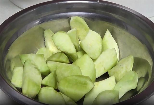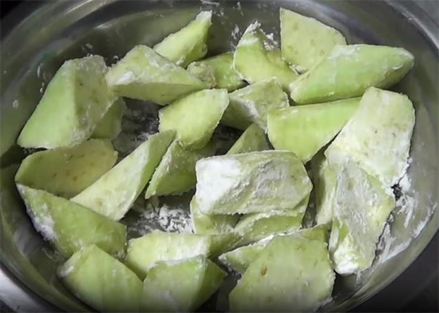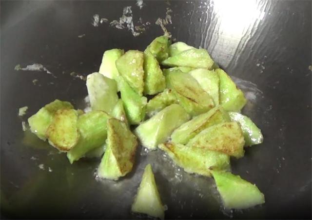 5.起锅加入稍多一点的油,油热之后下入茄子,先煎一下,茄子一直大火煎,把茄子煎至金黄捞出。