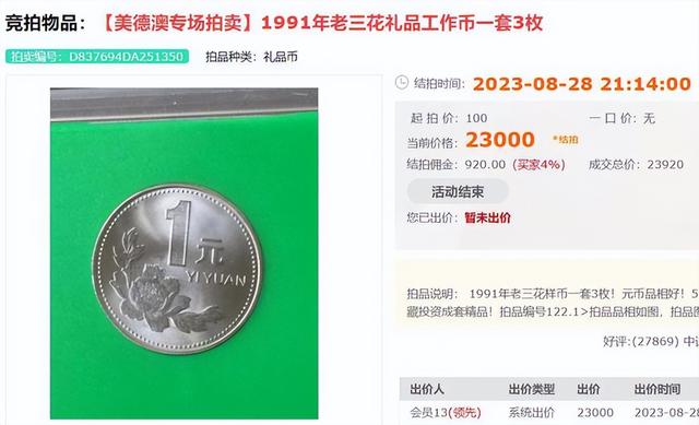 | 在8月底的一场拍卖会中,有三枚看上去十分普通的1991年的老三花硬币,一套拍了23920,这里大家也先别急着去找,能拍出几万的流通硬币,往往拥有各种绝学绝对没有看上去那么普通。