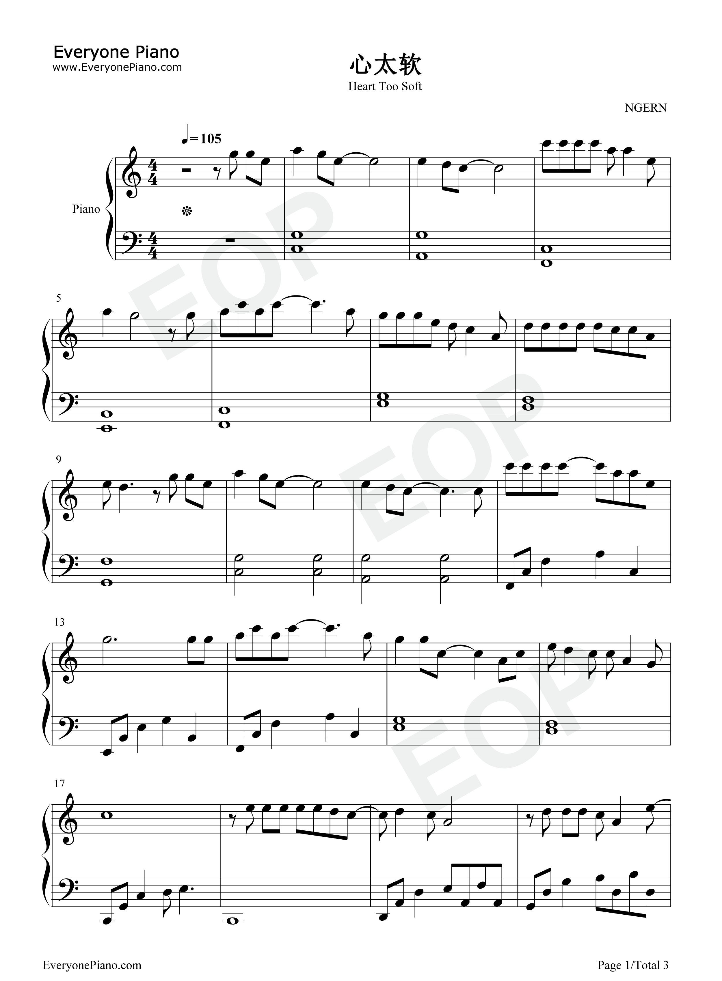 是中国台湾男歌手任贤齐的成名作。歌曲以一个劝解者作为主要视角,呈现出一位痴情者为爱毫无保留的付出,并在夹叙夹议间呈现出一些爱情的小哲理。这首歌曲不仅歌词通俗易懂,而且旋律也非常简单流畅,尤其“心太软”生动贴切的形象,更助长了歌曲的流行势头。(www.Ws46.com) 《心太软》传遍了大江南北,其实它的旋律很简单,唱的也只是很常见的一种“鸡肋”爱情心态:对于已(jìn)绝望的爱情,食之无望,弃之不忍,但它却触动了城市男女最柔软的心底。 《心太软》不是阳春白雪,整首歌里没有一丝一毫高雅的态度; 《心太软》也不是下里巴人,在歌曲里找不到有任何可以被斥之为“庸俗”的卖点。 歌曲中诸如“相爱总是简单,相处太难”这样的爱情小哲理,堪称都市文化的代表。这首歌曲以最简单的词汇表现出一定的现实规律,是它成为流行经典的因素之一。《心太软》看似是一首简单的小情歌,就在这一深一浅的平衡中,尽显创作过程中的难度。 心太软双手简谱是网友提供的,由网友制作,感谢NGERN对EOP的支持! 心太软歌词: 你总是心太软 心太软 独自一个人流泪到天亮 你无怨无悔的爱着那个人 我知道你根本没那么坚强 你总是心太软 心太软 把所有问题都自己扛 相爱总是简单 相处太难 不是你的就别再勉强 夜深了你还不想睡 你还在想着他吗 你这样痴情到底累不累 明知他不会回来安慰 只不过想好好爱一个人 可惜他无法给你满分 多余的牺牲他不懂心疼 你应该不会只想做个好人 喔 算了吧 就这样忘了吧 该放就放 再想也没有用 傻傻等待 他也不会回来 你总该为自己想想未来 你总是心太软 心太软 独自一个人流泪到天亮 你无怨无悔的爱着那个人 我知道你根本没那么坚强 你总是心太软 心太软 把所有问题都自己扛 相爱总是简单 相处太难 不是你的就别再勉强 夜深了你还不想睡 你还在想着他吗 你这样痴情到底累不累 明知他不会回来安慰 只不过想好好爱一个人 可惜他无法给你满分 多余的牺牲他不懂心疼 你应该不会只想做个好人 喔 算了吧 就这样忘了吧 该放就放 再想也没有用 傻傻等待 他也不会回来 你总该为自己想想未来 你总是心太软 心太软 独自一个人流泪到天亮 你无怨无悔的爱着那个人 我知道你根本没那么坚强 你总是心太软 心太软 把所有问题都自己扛 相爱总是简单 相处太难 不是你的就别再勉强 不是你的就别再勉强 不是你的就别再勉强 不是你的就别再勉强 |