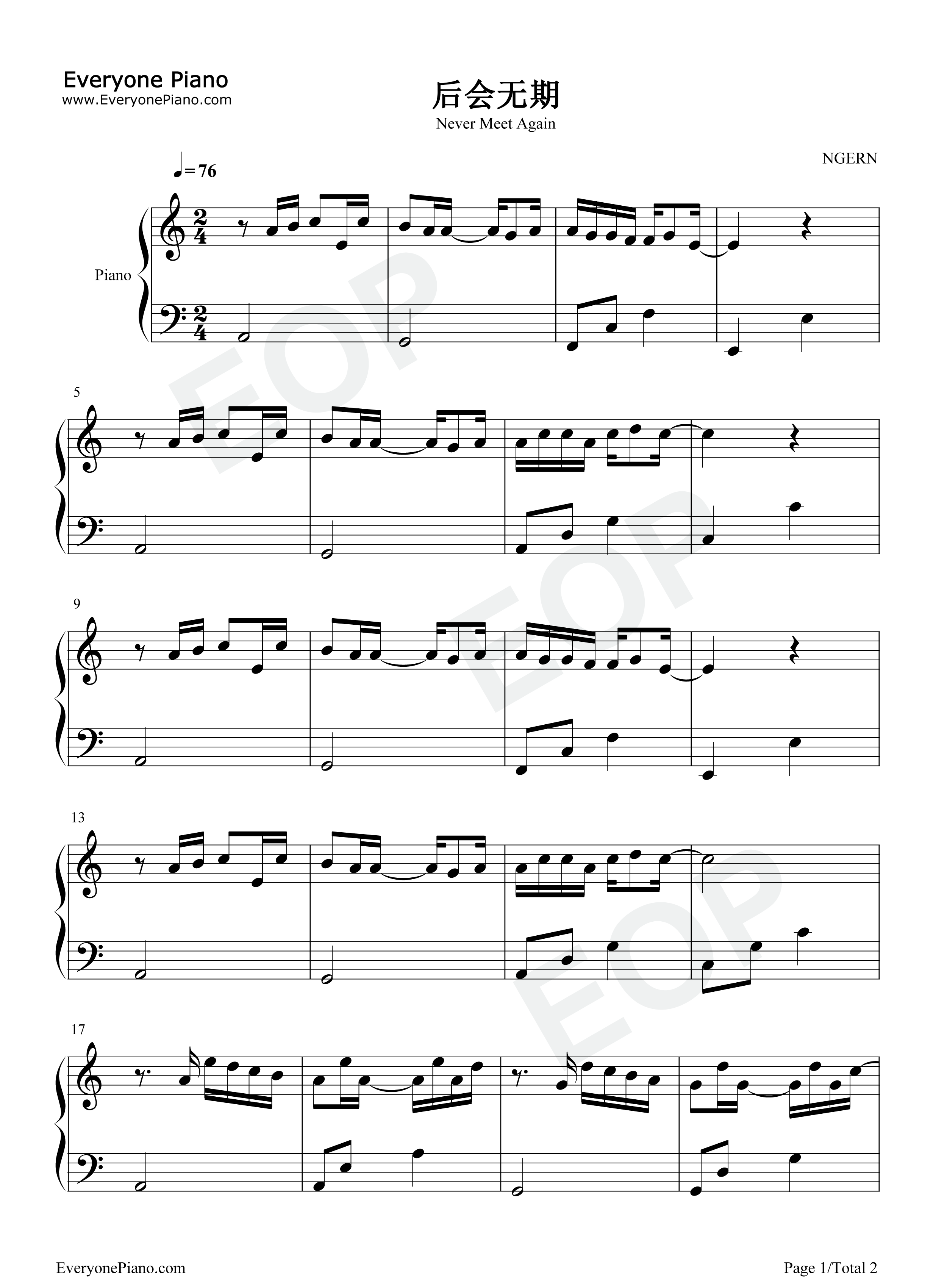 《后会无期》是徐良和汪苏泷演唱的一首歌曲,收录在徐良2011年发行的专辑《不良少年》中。(www.ws46.com) 此曲流畅且具有超强传唱性的旋律,同时徐良对节奏的良好把握度,也让人眼前一亮。而且徐良的签约公司美妙音乐给予了他充分的空间,并没有大刀阔斧地对他的音乐进行更市场化的精良包装,这反倒保留了徐良音乐中的最宝贵的淳朴面貌。 这歌曲表达一种情绪,徐良和汪苏泷与一个女主角一同出境演绎这首有点抽象的MV。MV远赴台湾苗栗取镜,徐良一身黑色造型酷劲十足,汪苏泷则身着从未尝试的荧光色系蕾丝做装饰的衬衫,导演陈映之力求把这只网络上深受歌迷喜爱的歌曲通过视觉完美呈现出来。 后会无期双手简谱是网友提供的,由网友制作,感谢NGERN对EOP的支持! 后会无期歌词: 合:你若离去 后会无期 你若离去 后会无期 你若离去 后会无期 徐:等不到 风中你的脸颊 眼泪都美到很融洽 等不到 掩饰的雨落下 我的眼泪被你觉察 汪:等不到 你的雪月风花 我们的爱也有时差 等不到 不经意的牵挂 却没出息的放不下 徐:你说陪我到某年某月某天 却把我丢在某日某夜某街 错的并不是你 而是全世界 汪:你带走我的思念 却没说抱歉 一起走过的黑夜 变一地白雪 合:我把记忆都翻遍 却没有发现 我们约好的明天 你留给昨天 你若离去 后会无期 你若离去 后会无期 你若离去 后会无期 汪:等不到 手中松开的沙 被风扬起的很优雅 等不到 送你蝴蝶发卡 你的他爱上了短发 徐:你说陪我到某年某月某天 却把我丢在某日某夜某街 错的并不是你 而是全世界 合:你带走我的思念 却没说抱歉 一起走过的黑夜 变一地白雪 我把记忆都翻遍 却没有发现 我们约好的明天 你留给昨天 你带走我的思念 却没说抱歉 一起走过的黑夜 变一地白雪 我把记忆都翻遍 却没有发现 我们约好的明天 你留给昨天 汪:我们约好的明天 合:你留给昨天 |