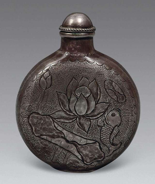鼻烟是印第安人发明的,其它的就不需要火种捏一点放鼻子里就行了,在马背上生活印第安人会觉得比较方便,这又恰巧迎合了满族人的生活习惯,所以满清入关以后就开始了大流行,从皇帝的宫殿到街头的茶馆,大家都有了一个共同的嗜好,鼻烟它是粉末状的就一定需要容器。