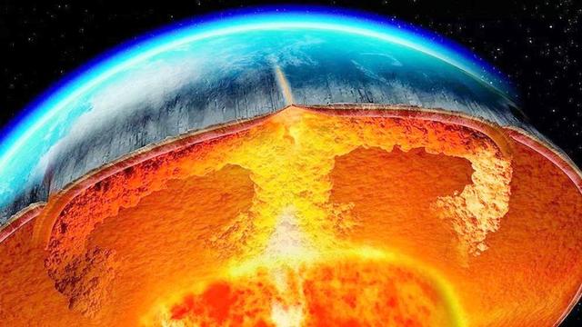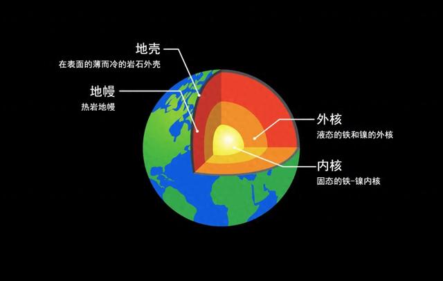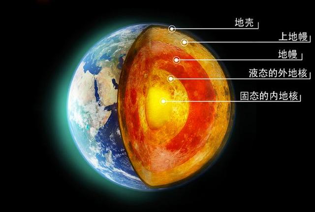 如果把地球切成两半,我们会看到地球深处隐藏着一个炽热的金属球,它的外面是四个不同的层:岩石壳、炽热的液态地幔、液态铁和镍构成的外核,以及固态铁内核,这两个核心层的大小大约与火星相当,但温度高达10,000度,比太阳表面还要热。