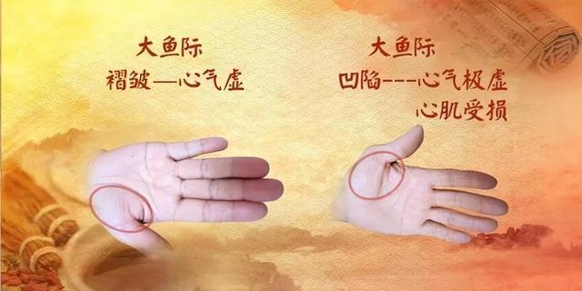 2, 拇指根部有褶皱或凹陷 但是相对来说褶皱的程度还比较轻,一旦发展到凹陷就说明心气极虚,要注意了。