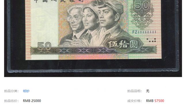 1980年的50元纸币,已经成为了四版币的币王,但1990年的50元其实也很珍贵,在中晟拍卖会上,就有一张号码特殊的拍了57500,而普通的90年50元纸币也会拥有不错的市场溢价,如果你家里还有的话可以去找找看。  那么90年的50元纸币具体表现如何呢?今天就带大家一起来看一看,1990年的50元纸币是92年8月份开始发行的,它们的发行量并不多总共是只有141个冠号,因此这种50元纸币,如今也受到了不少藏友的追捧。 目前一张好品的9050市价是已经可以超过100了,如果是全新的甚至能超过150,相当不错的表现,相对于品相来说号码其实会更加关键,它会让一张普通的90年的50元,一跃达到好几万的高度。 比如图片中这张90年的50元,品相并没有特别出色评分也只有66分,但它的号码十分罕见,这张纸币的号码八个数字全部都是1,这就是最少见的全同号,或者是叫做麒麟号,这样号码的四版50元,单张自然是可以达到好几万的高度了。 注意就算未尾是6同号的,比如上面这张也拍出了5888,所以大家在找90年50元的时候,一定也要记得多看看号码。