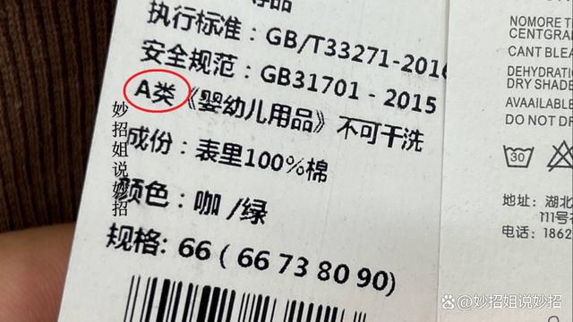 2,看安全级别 安全级别对于服装来说非常重要。不同的安全级别适合不同的人群和穿着场景。按照《国家纺织品基本安全技术规范》的划分,服装可分为A、B、C三个安全级别。 A 类为婴幼儿用品,其甲醛含量不得大于20毫克每公斤。4岁以内的孩子的衣服一般是A类,尤其是贴皮肤的衣服。B类为直接接触皮肤类服装,其甲醛含量不得大于75毫克每公斤,适合贴皮肤穿的,一般内衣、秋衣、睡衣上的标签显示为B类。C类为非直接接触皮肤类服装,其甲醛含量不得大于300毫克每公斤。外套、不直接接触皮肤的衣服一般是C类,如果内衣上是C类建议不要买,否则就很可能会造成皮肤瘙痒、出现红点等过敏症状。