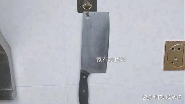 妙用一:方便收纳沥水。 菜刀非常地锋利,在每次使用完就需要我们放置好了。要是一不小心掉落或者被家里的孩子拿到玩耍,还可能出现意外。为了避免这些情况,我们就可以准备一个挂钩粘在厨房的墙壁上,然后把菜刀上的小圆孔穿过挂钩,这样就把菜刀收纳在了墙壁高处。它既节省了空间,让厨房看起来更加整洁有序。而且悬挂放置,也能让空气更好地流通,使菜刀更快地晾干,避免生锈的情况发生。要用的时候也很方便,随手就可以取到。
