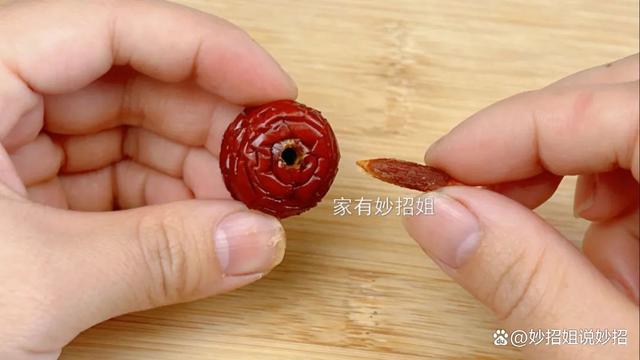 这个利用菜刀上圆孔去核的方法简单又快速,而且去完枣核的红枣还依旧是完好的。
