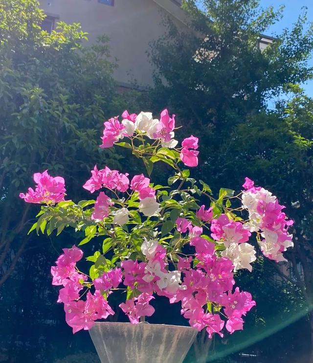 两喜:光照与肥料,催生花芽的两大法宝 三角梅是个典型的喜光植物,光照对其生长和开花至关重要。在秋季,随着日照时间的减少,我们需要格外注意为三角梅提供足够的光照。将其放置在阳光充足的位置,如朝南的阳台或窗边,确保每天能够接受到至少6-8小时的直接光照。这样不仅能促进三角梅进行光合作用,积累更多养分,还能有效刺激花芽的分化,为开花打下坚实基础。