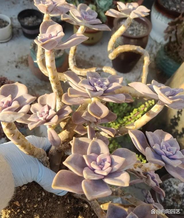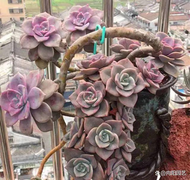 实际上多肉圈子中一些老的品种在养护上往往是最容易最简单的,紫乐就可以说得上是多肉植物中的代表,经久不衰的老品种,绝对是经得起时间考验的,我家的紫乐养护的时间大概有六七年了,在这其中繁殖了无数盆,叶片掉下来插到土里就可以发根生长,扦插的成活率能达到90%。