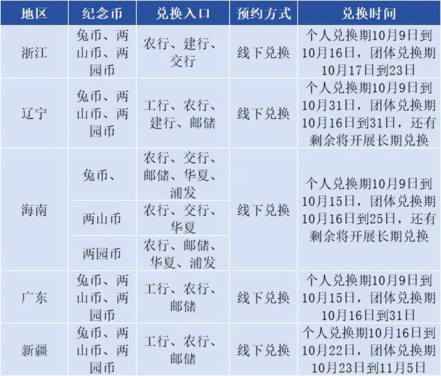 根据发行安排,兔年纪念币和其余4枚普通纪念币,将在10月进行余量兑换。