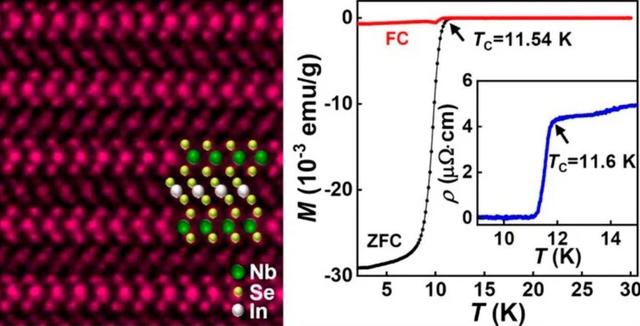 过渡金属二硫属化物中的一些材料已经被发现具有超导性,比如NbSe2,TaS2,MoS2等。这些材料的超导性和它们的层状结构有关,因为层状结构可以影响电子的维度、对称性、耦合强度等。然而,这些材料的超导转变温度(Tc)都很低,而且它们的超导电流密度(Jc)也很低,这些性能限制了它们的应用范围。 新的超导材料一篇最近发表在《美国化学会杂志》上的论文发现了一种新的超导材料,它是由NbSe2和InSe2两种过渡金属二硫属化物组成的层状结构。他们通过化学气相沉积的方法,在NbSe2的范德华间隙中插入了InSe2的层,形成了(InSe2)xNbSe2的化合物,其中x是InSe2的摩尔分数,可以通过控制反应条件来调节。这种方法可以有效地改变NbSe2的晶格参数、电子结构、电荷密度等,从而影响它的超导性。