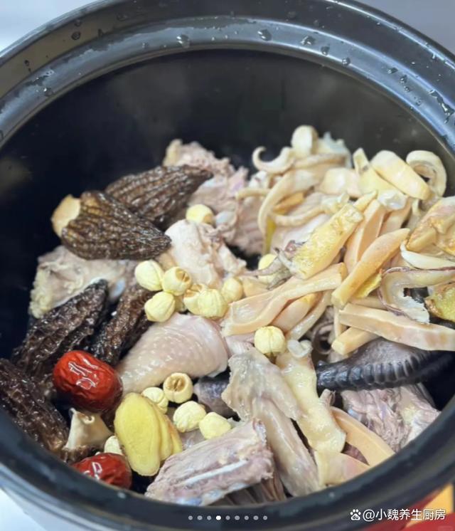 到了九月底以后,雨水增多,秋风起,气温开始降低,外面都刮起风,虽然白天非常暖和,但是晚上非常寒冷,昼夜的温差很大,很多上了年纪的人,特别容易贫血,身体非常虚弱,尤其是女性朋友,色泽苍白,浑身都没有劲,免疫力特别低下。秋季是不错的进补时机,气温非常飘忽不定,需要给家里人适当进补,加强锻炼,规律作息,让身体越来越健康。今天推荐一款适合女人食用的汤品——羊肚菌墨鱼炖鸡汤,汤品非常温补,补血补气,还能改善失眠,对身体颇有好处,别不懂吃。许多人还是第一次听说这款羊肚菌墨鱼炖鸡汤,不如跟着小编详细看一看吧。秋季,女人要多喝这汤,简单易学,补血安神,脸色越来越红润!  【羊肚菌墨鱼炖鸡汤的制作技巧】 准备一些食材:选购若干个羊肚菌(羊肚菌是一种野生的食用菌,非常受南方人的喜欢,拿来煲汤正合适),墨鱼干一个(墨鱼干是干制的海鲜食品,泡发后可以做成许多美食,煲汤也非常不错),老姜半块,新鲜土鸡半只(也可以用老母鸡来煲汤,汤品鲜美,肉质鲜嫩,是秋季进补的食材之一),温水少许,冷水少许,若干个红枣,香葱若干根,干莲子20克左右,少许胡椒粉,食盐少许,其他。 具体制作过程: 第一步:提前选购好羊肚菌,莲子,墨鱼干和土鸡等食材,先把羊肚菌放在器皿里,加上适量温水泡发,去掉一圈根部,清洗里面的泥沙,控干水分即可。 第二步:先把墨鱼干放在盆中,加上适量温开水,加上一勺食用碱,将墨鱼干浸泡几个小时,中途可以换一换热水,撕掉一层黑膜,洗净后切成长条,放在一边备用。第三步:把红枣去核洗净,生姜切成一些片状,香葱洗净切成细葱花,干莲子提前温水泡发几个小时,别忘记取出里面的莲子心,控干水分备用。 第四步:将半只土鸡出来干净,去掉多余的部位,剁成大小相同的块,起锅倒入洗净的鸡肉,放入葱结,姜片和料酒,一定要冷水下锅,把鸡肉炖煮几分钟,舀掉浮沫,捞出备用。 第五步:将砂锅提前洗干净,锅底放入处理好的鸡肉,干莲子,红枣,墨鱼干和姜片,加上足量冷水,一定要全部没过食材,水一次性多加一些。第六步:转到中小火煲70分钟左右,让汤汁色泽慢慢变色,调入半勺胡椒粉和一勺食盐,不需要添加其他佐料,关火出锅开吃,这道羊肚菌墨鱼炖鸡汤就制作完成了。 羊肚菌墨鱼炖鸡汤是一款补血安神的鲜汤,深受南方人的喜欢,选用墨鱼干,红枣,莲子,羊肚菌和土鸡炖煮而成,汤品里全部是精华,营养非常全部,补充元气,气色越来越好。 网友们,你们有没有喝过这款羊肚菌墨鱼炖鸡汤呢?(文中配图都出自网络)(www.ws46.cOm)