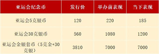 不出意外的,这套纪念币的预约热度很高,中签率甚至不足百分之一。 随着亚运会的举办,亚运会纪念币的热度也在不断攀升,也有越来越多币商,开始放出它们来。 它们当下的表现,百科网也整理好了表格。