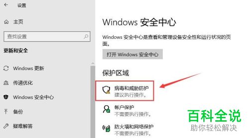 4. 如图,在右侧打开的页面,点击病毒和威胁防护的选项。