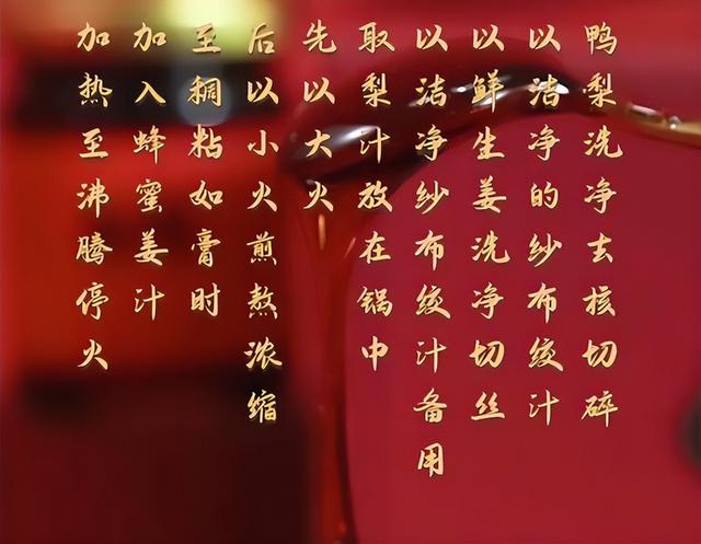 以及百合、菊花、甘草、玉竹和蜂蜜这些养阴润燥的食材,没有防腐剂、增稠剂,都是手工熬制,用大自然的草本精华,来润养我们的五脏之燥。 熬制成的膏体润滑通透,滴丝成珠,喝下去喉咙很舒服,浓郁的梨香枇杷味,有着天然的滋润。含在嘴巴里,徐徐咽下。