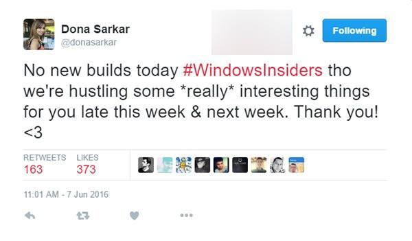 6月8日消息,昨天我们曾报道过Win10 Insider项目负责人唐娜姐Dona Sarkar预告将在本周推送Win10 Mobile年度更新新预览版,现在唐娜姐在Twitter上又卖起关子,称下一个预览测试版本“有一些真正有意思的事情”包含其中。