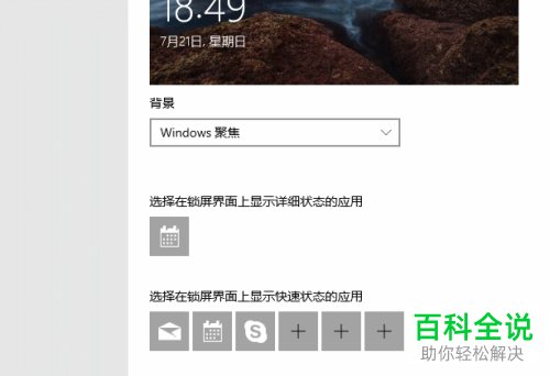 5.第四步,在右侧的详情页面中,找到选择在锁屏界面上显示快速状态的应用,然后点击下方的 图标,并选中天气功能即可。