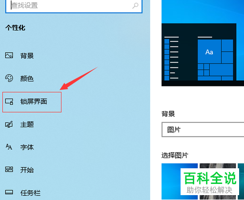 4. 第三步,在打开的个性化窗口内,点击左侧的锁屏界面选项。