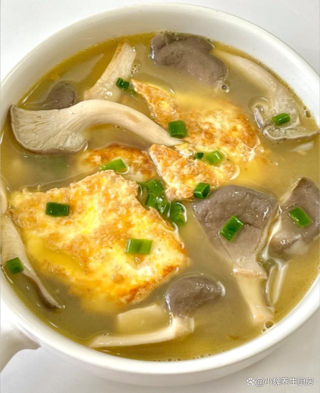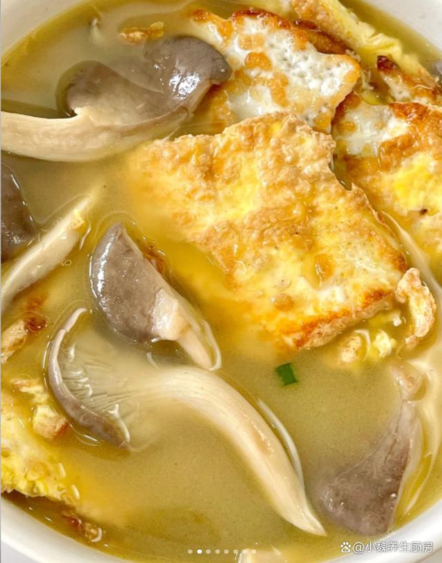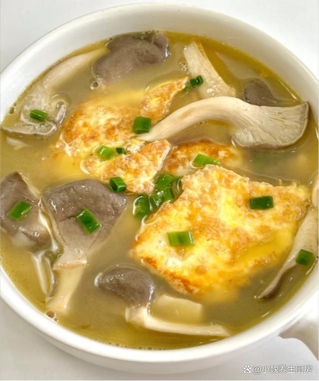 4:锅底留少许油,加上一勺猪油(这样汤品会更鲜美),加上姜蒜和葱白爆香,倒入平菇炒至变软,水分都炒出来。 5:加上一些煎好的鸡蛋,加上适量清水和开水,大火煮8分钟左右,汤品煮至浓稠,鲜味都煮出来,也可以加入豆腐和肉片。 6:调入一小勺味极鲜,加上少许食盐,调入鸡精和其他佐料,撒上一些细葱花,这道平菇煎蛋汤就制作完成了,学会给家里人做一做。 平菇煎蛋汤的制作小贴士:首先,挑选平菇时,尽量选择色泽鲜亮、菌盖肥厚且没有破损的,这样的平菇不仅口感更佳,还富含更多营养。其次,在煎蛋之前,可以在蛋液中轻轻加入少量清水和盐,搅拌均匀,这样煎出的蛋饼会更加蓬松柔软,为汤品增添一抹细腻口感。 另外,为了提升汤的鲜味,可以在炒平菇时加入少许蒜末和姜片,它们的香气能够完美融入汤中,使整道菜品层次分明,回味无穷。如果喜欢更丰富的口感,不妨在煎蛋后,将切碎的葱花撒在蛋饼上,再一同加入沸水中,这样葱花的清香会与平菇的鲜美相互交织,令人食欲大增。 最后,调味时需注意平衡,适量加入盐和鸡精即可,避免过多调料掩盖了食材本身的味道。若追求更加清新的风味,可以滴入几滴香油或撒上少许胡椒粉,既提香又增味,让平菇煎蛋汤成为餐桌上的一道亮点。通过以上小贴士的巧妙运用,相信你的平菇煎蛋汤定能更加出色,不仅温暖了家人的胃,也温暖了彼此的心。在忙碌的生活节奏中,这样一道简单却满载心意的汤品,无疑是最温馨的家庭滋味。 平菇煎蛋汤是一款简单易学的汤品,比鸡汤做法更简单,选用平菇和鸡蛋烹饪而成,汤色非常好看,鲜美极了,让人肠胃更舒服,胃口更好了,补充营养,安稳度过今年秋天。 (www.ws46.com) 小伙伴们,你们是否喜欢喝这款平菇煎蛋汤呢?(文中的配图都出自网络)