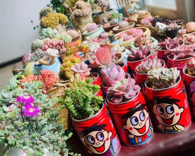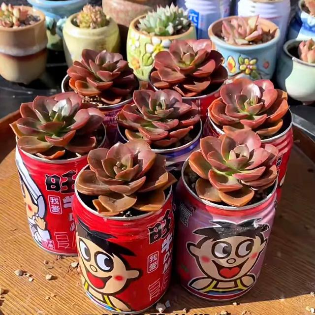 然而,与传统的花卉种植不同,她选择了一种别具一格的容器——易拉罐,来栽种她的多肉宝贝。 谈及这一创意的起源,据说是灵感的闪现。一次偶然的机会,她在网络上看到有人利用废旧物品进行植物种植,既环保又美观。 这启发了她尝试用身边常见的易拉罐作为种植容器。经过一番尝试和摸索,她发现易拉罐不仅成本低廉、易于获取,而且其金属材质具有良好的透气性,非常适合多肉植物的生长。