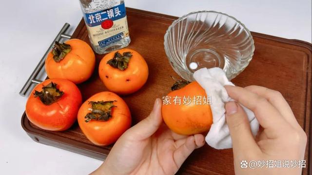 方法三:白酒催熟。 我们先准备一点白酒,把白酒倒在碗中,接着再拿张纸巾,用纸巾沾上白酒后,在柿子的表面擦拭一下,使柿子的表面都粘有白酒。将所有柿子表面都涂抹有白酒后,我们再找个袋子,把柿子放入袋子中,并将袋口密封好就可以了。大概过上两~三天的样子,柿子就催熟变软,可以吃了。因为白酒中含有乙醇,而乙醇能够渗透到柿子中,促使柿子中的鞣酸转化,从而防止柿子吃着涩口,并且白酒还具有催化作用,能使柿子快速变软。