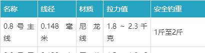 三、钓重论述 确实如此。虽然0.8号主线搭配0.4号子线在理论上可以承受约0.9~1.3千克的重量,但实际钓鱼时还需考虑到多种因素如鱼的战斗力、流水的冲力等。因此,这种线组搭配更推荐用来钓重量在2两至半斤的鱼。不过,在鱼不特别活跃的季节,例如早春、深秋和冬季,也有可能用这种线组搭配钓到更大的鱼。 在实际操作中,钓友们还可以根据具体情况适当调整主线和子线的搭配。如果目标是更大的鱼种,可以适当增加主线和子线的号数。同时,不要忽视对线组的定期检查和更换,保持线组状态的良好是成功钓鱼的关键之一。而且,在进行长时间或大重量的钓鱼活动之前,进行实际的拉力测试也是非常必要的,以确保线组的承载能力符合实际钓鱼的需求。