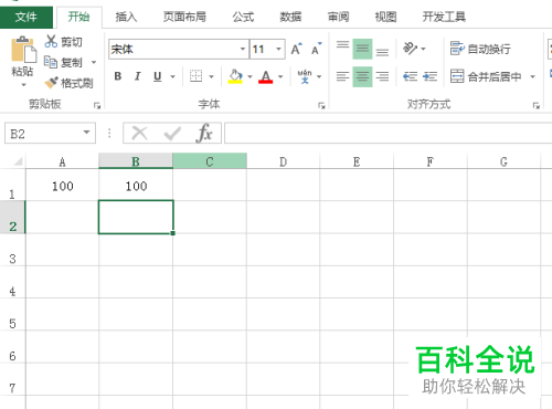 5. 然后我们在A1单元格中输入100的时候,B1单元个也会自动累加到100。www.ws46.com