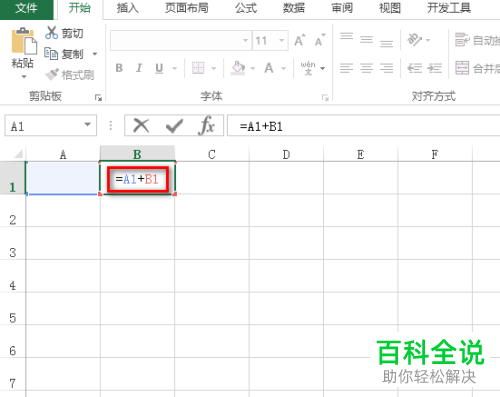 4. 然后我们回到界面中,点击B1单元格,输入=A1 B1。