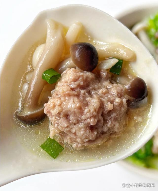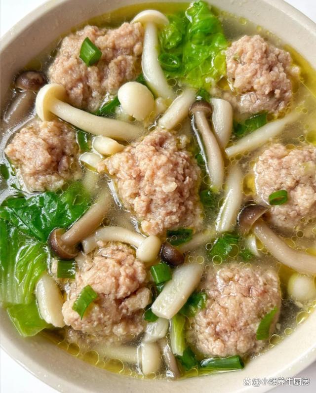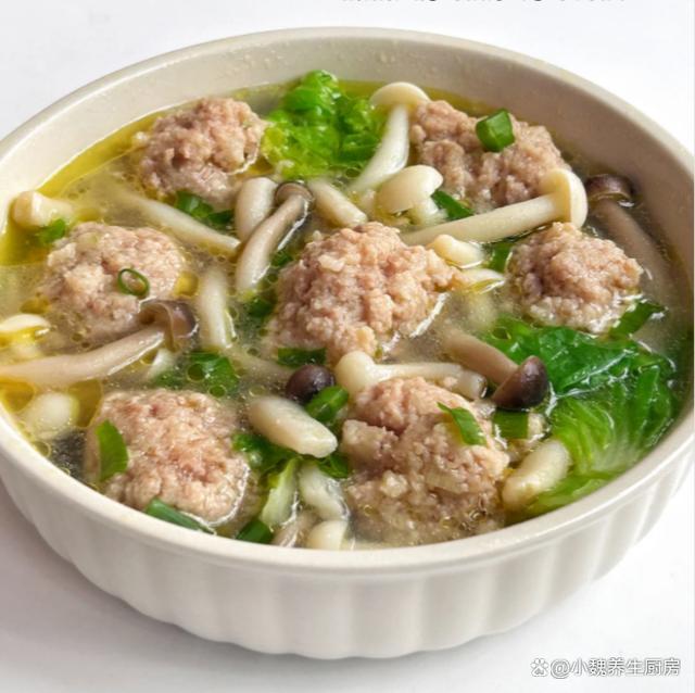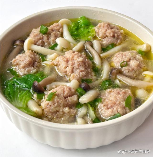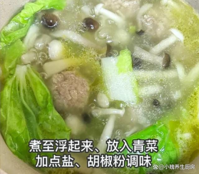第五步:另外起锅,锅底加上食用油和猪油,让油烧热乎,加上葱白和姜末爆香,倒入两种菌菇炒至变软。 第六步:加上两碗开水,将汤汁煮3分钟,然后调到中小火,猪肉馅用勺子做成虎口,将肉丸子均匀下入锅里。 第七步:肉丸子全部飘上来,下入一些青菜烫熟,加上鸡精,胡椒粉和食盐调味,有条件可以放入枸杞子,焖煮一小会儿即可,这款菌菇青菜肉丸汤就烹饪完成了。 菌菇青菜肉丸汤是一款特别美味的汤品,食材并不贵,做法也很简单,做出来的肉丸子很鲜嫩,搭配菌菇和青菜,让汤品更鲜美,暖胃健脾,如果家里孩子长身体,可以每周喝这汤,也不担心孩子长胖。 网友们,你们是否学会这款菌菇青菜肉丸汤的正确做法吗?(全部文章都出自网络)