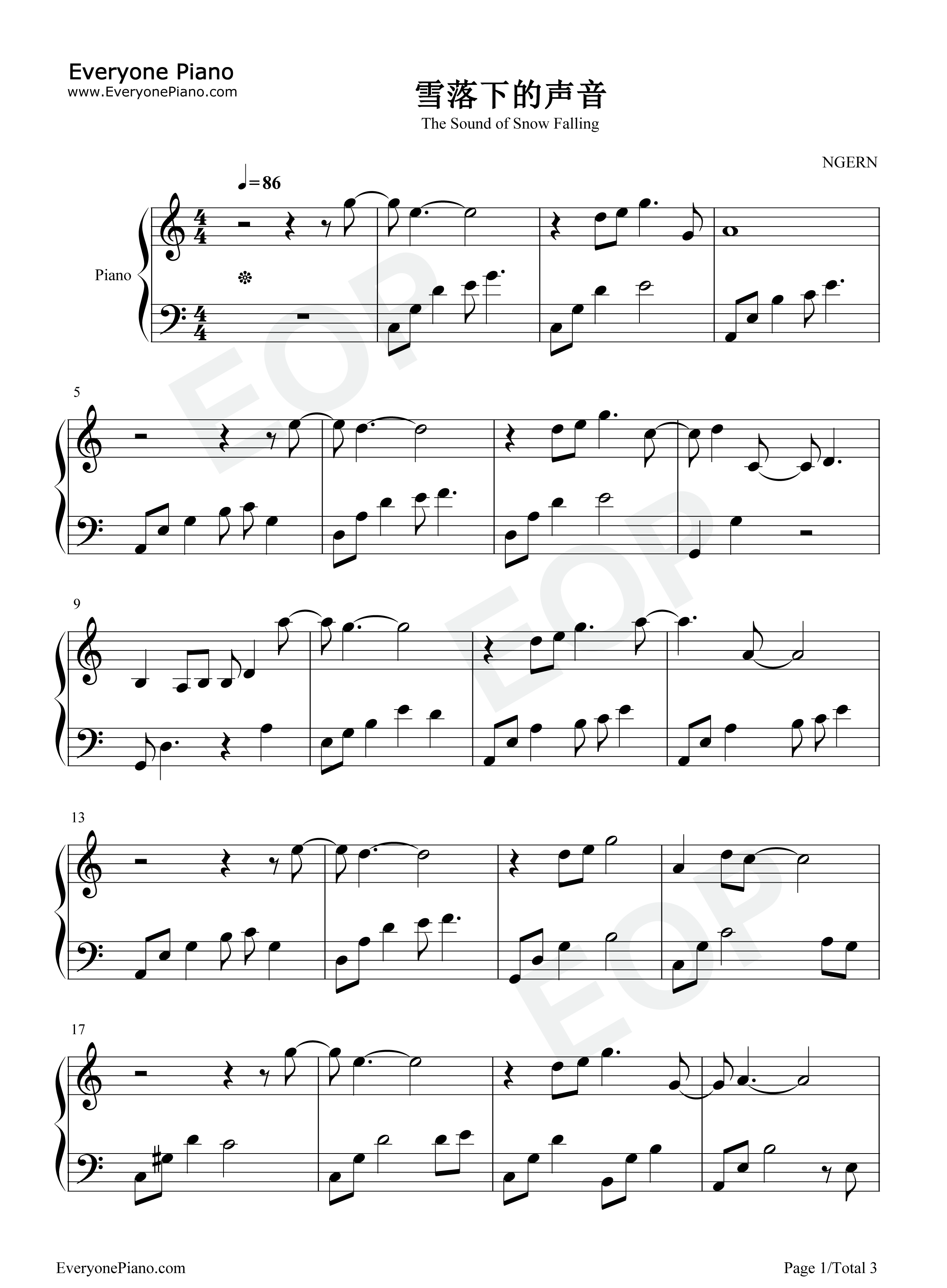 我慢慢地听,雪落下的声音, 闭着眼睛幻想它不会停 这首歌听起来舒缓如落雪的歌曲,出自陆虎作曲并演唱的《雪落下的声音》。同时它也是电视剧《延禧攻略》的插曲(由秦岚演唱)以及片尾曲。 虽被许多人翻唱。但是小编最喜欢的还是周深演唱的版本。他的声音细腻干净,声不醉人人自醉。周深不是那听雪者,他就是那片雪花。听雪者远不及雪花了解自己内心的孤独和无助,只有雪花自己懂得。而周深的版本上线后,就高居新歌榜榜首,这也是网友们对周深的一种肯定。 雪落下的声音双手简谱是网友提供的,由网友制作,感谢NGERN对EOP的支持! 同时,网站还为大家提供了不同版本的《雪落下的声音》的曲谱下载(www.Ws46.com) 雪落下的声音歌词: 轻轻 落在我掌心 静静 在掌中结冰 相逢 是前世注定 痛并 把快乐尝尽 明明 话那么寒心 假装 那只是叮咛 泪尽 也不能相信 此生 如纸般薄命 我慢慢地听 雪落下的声音 闭着眼睛幻想它不会停 你没办法靠(jìn) 决不是太薄情 只是贪恋窗外好风景 我慢慢地品 雪落下的声音 仿佛是你贴着我叫卿卿 睁开了眼睛 漫天的雪无情 谁来赔这一生好光景 明明 话那么寒心 假装 那只是叮咛 泪尽 也不能相信 此生 如纸般薄命 我慢慢地听 雪落下的声音 闭着眼睛幻想它不会停 你没办法靠(jìn) 决不是太薄情 只是贪恋窗外好风景 我慢慢地品 雪落下的声音 仿佛是你贴着我叫卿卿 睁开了眼睛 漫天的雪无情 谁来赔这一生好光景 谁来赔这一生好光景 谁来赔这一生好光景 |